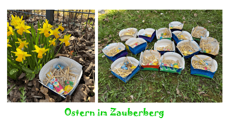 Wir haben einen Garten mit Obstbäumen und einem Pflanzbereich mit vielen Möglichkeiten zum Entdecken, Bewegen, Beobachten und Spielen (Brunnen, Gartenhäuschen, Sand- und Wasserspielbereich, Spielgeräte). Der Garten wird von allen Gruppen genutzt. Zusätzlich gibt es für den Hort einen eigenen kleinen Außenbereich sowie die Möglichkeit im angrenzenden Baumpark zu spielen.